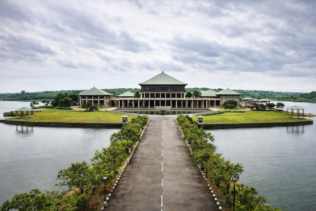 Unlike tall government buildings in other countries, Sri Lanka’s Parliament respects the natural landscape and creates harmony between architecture and environment.