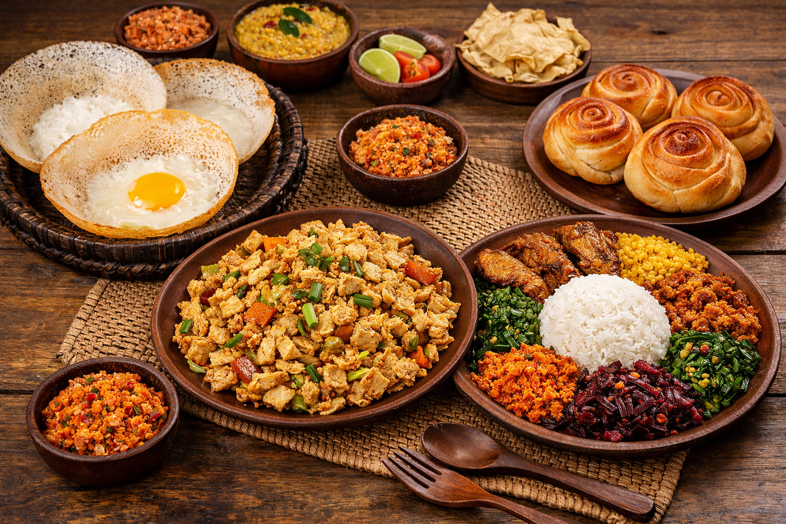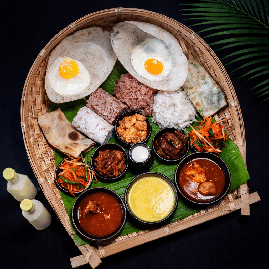 (Kottu, Hoppers (Aappa), String Hoppers (Idiappa))Beer (or Soft Drink)